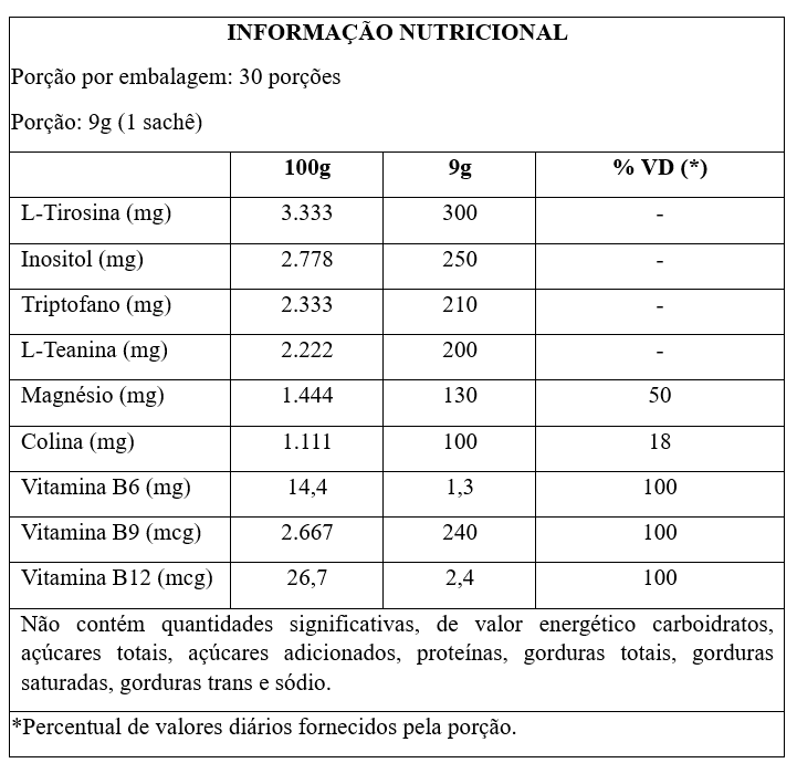 Contém L-teanina e Inositol para acalmar sem sedar.